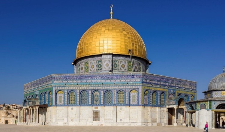 The Dome of the Rock spreads on the Temple Mount in Jerusalem, on the site of long-gone Jewish Temples. Inscribed on the façade in Arabic is ‘Do Not Say Three.’ This is the Muslim condemnation of the Trinity. It began as a testimony of a Christian priest.